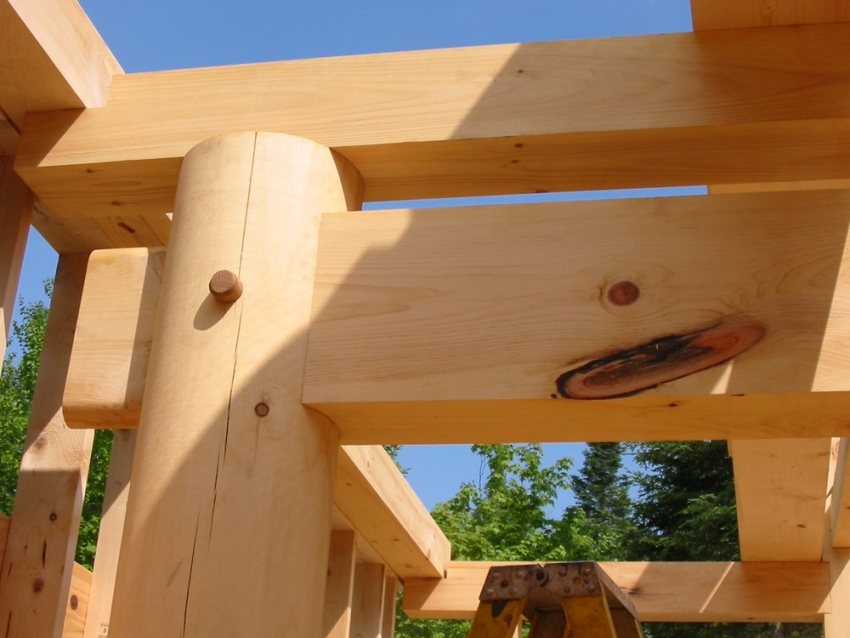 - нагель по прочности должен превосходить применяемый брус. Желательно использовать дубовые нагели, но часто их вырезают самостоятельно из остатков пиломатериала;