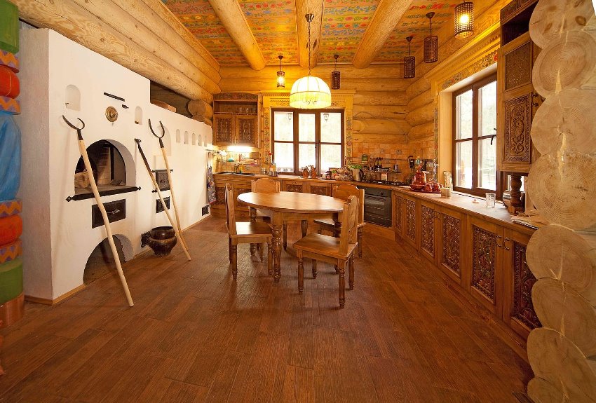 Кухня с большой русской печью