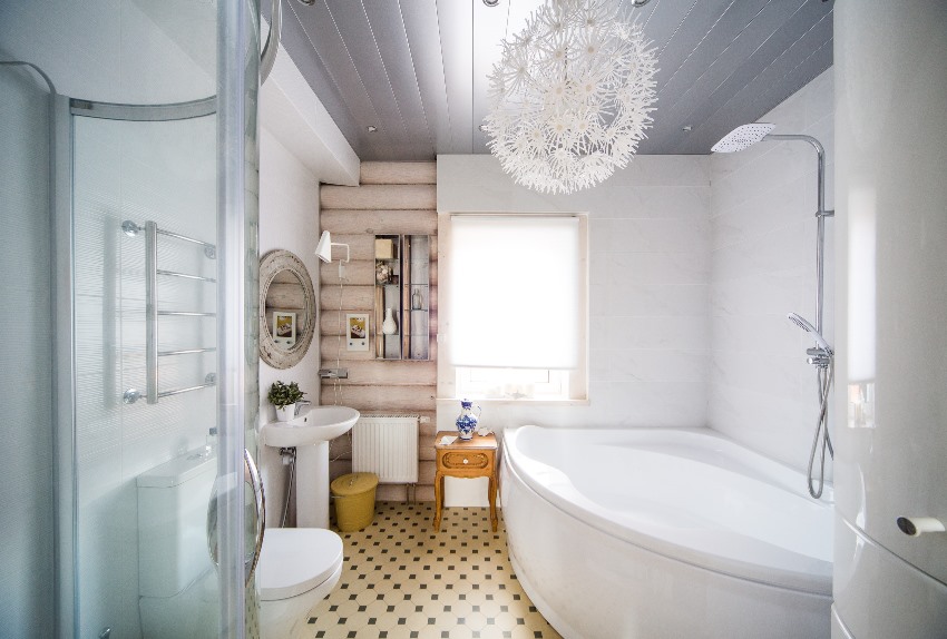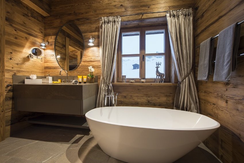 Ванная в горном домике может выглядеть вполне современной