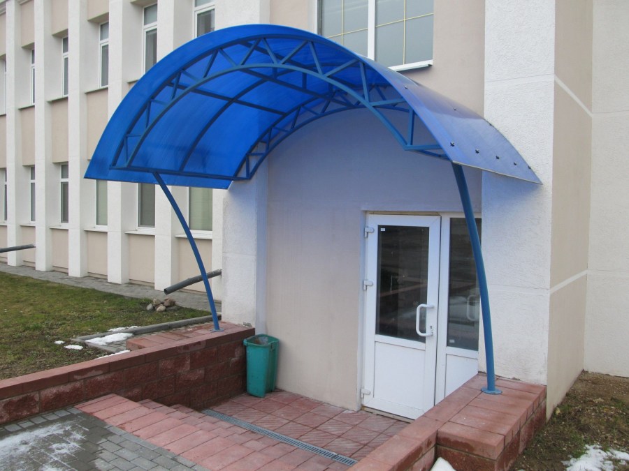 Надо отметить, что проектируя конструкцию над входом из поликарбоната необходимо учитывать и общий дизайн здания, чтобы обеспечить общее единство формы и функциональности навеса. Фото оригинальных навесов из поликарбоната над входом можно увидеть ниже.