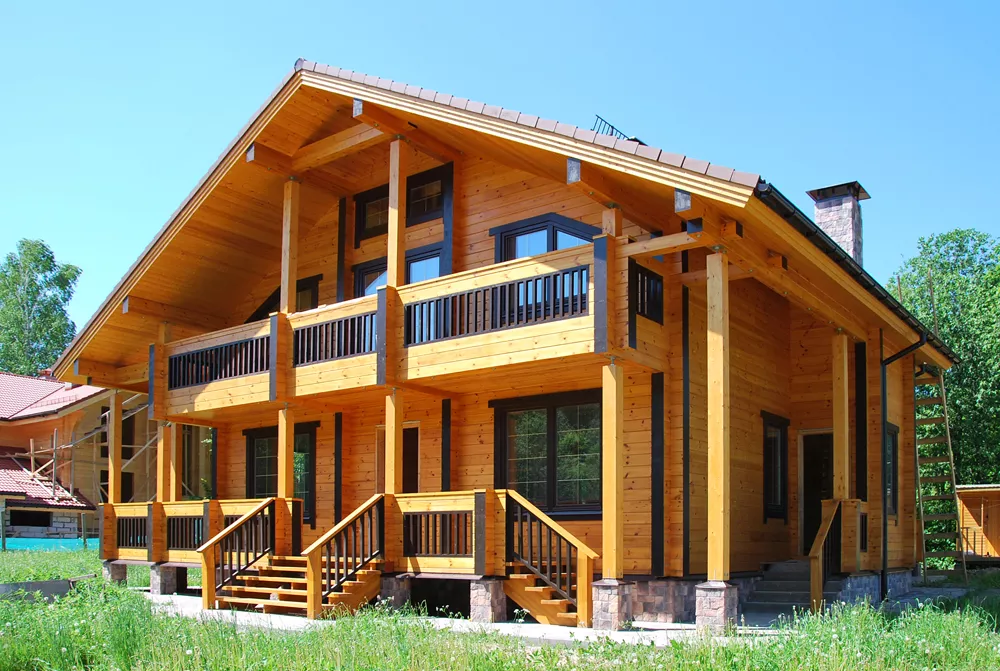 Последним этапам в строительстве деревянного дома является внешняя и внутренняя отделка дома. Отделочные работы следует проводить после того, как дом усядется, если в процессе строительства использовался, сырой материл, то необходимо подождать полтора года. В процессе внутренней отделки устанавливаются межкомнатные перегородки, оконные рамы, дверные коробки и лестница, ведущая на второй этаж