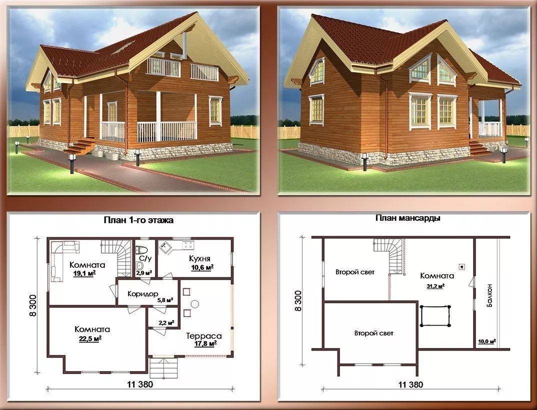 - двухэтажный дом с наличием веранды и навесом для транспортного средства (общая площадь будет составлять чуть меньше 200 квадратных метров);