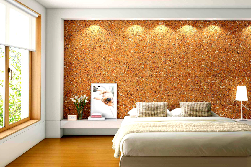 Из пробкового дерева изготавливают покрытия для стен. Это могут быть обои (тонкий слой пробки нанесен на бумагу или флизелин), рулоны (полотно толщиной 2 мм, состоящее из двух слоев), панели. Последний вариант представляет собой плиты толщиной 30х60 см. Пробковая панель на стену также имеет два слоя: нижний выполнен из прессованной крошки, верхний является тонким срезом коры дерева – шпоном. Данное покрытие обладает рядом значительных достоинств: