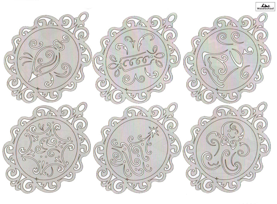 Главная особенность этих новогодних украшений – красивая ажурная рамка с легким объемным эффектом. Такой незамысловатый эффект достигается простым способом. Овальный центр подвески аккуратно вырезается по шаблону, сдвигается назад и фиксируется на клей. Таким образом, ажурная рамка, выступающая на передний план, придает дополнительный объем и делает орнамент более интересным.