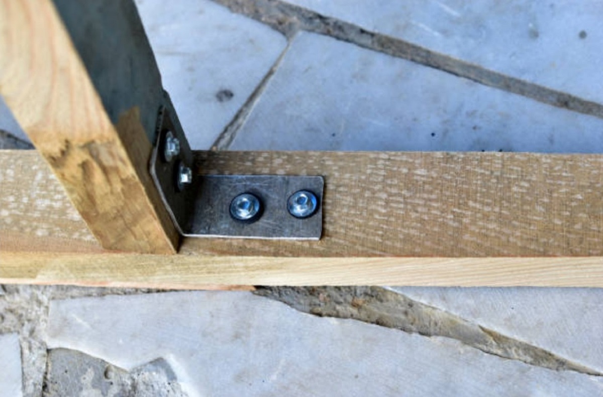 Ставят брусок, прибивают гвоздем. Как следует закрепить положение столбиков можно путем монтажа металлических накладок, которые прикручивают по бокам возвышений.