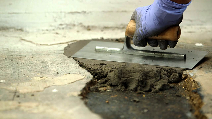 - Заделка трещин и щелей с помощью ремонтного состава или эпоксидной краски, смешанной с кварцевым песком.