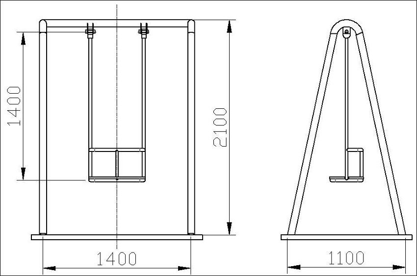 Чтобы иметь представление о будущей конструкции, правильно рассчитать материал, нужна схема. Можно найти готовую в Интернете или нарисовать своими руками, скопировав уведенную на площадке модель качели.