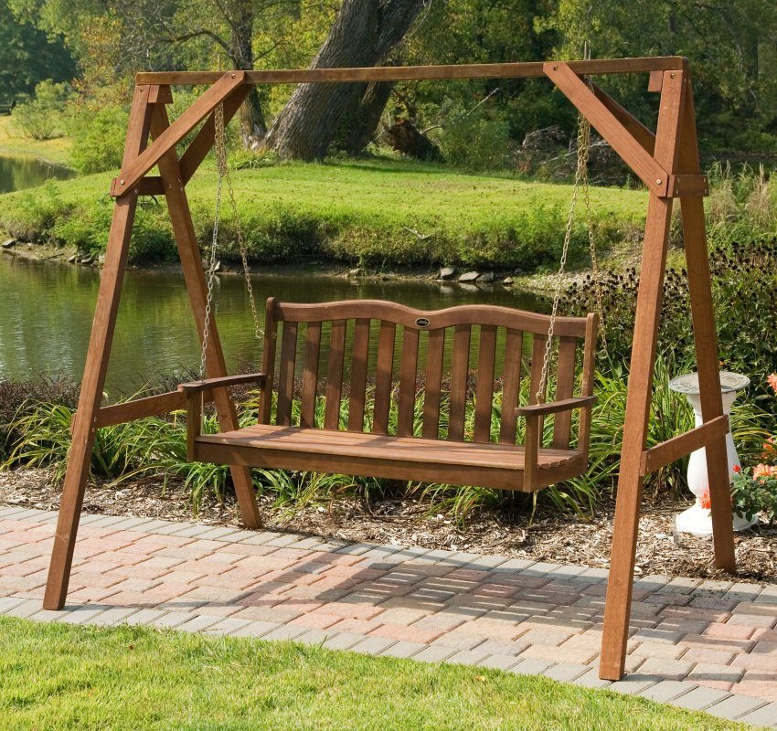 каркас деревянных качелей будет оптимальным для установки. Ведь его форма