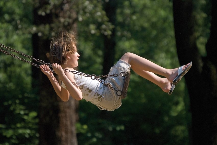 Размещая детские качели в саду, необходимо предусмотреть достаточно места для качелей