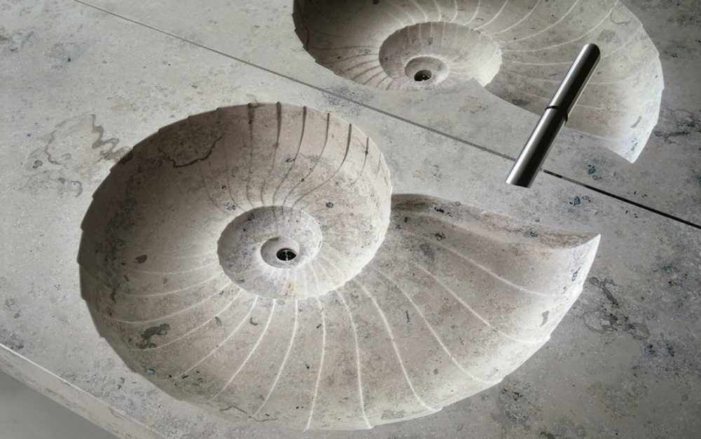 - Ammonitum (Швейцария). Характерная черта всех моделей – нарочито полосатый рисунок деревянной поверхности. Он напоминает спираль раковины древнего моллюска аммонита, в честь которого назван бренд. Самые узнаваемые модели умывальников – Conos, Taurus, Bootes, Vela.