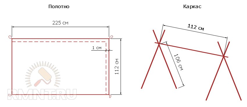 - ткань натягивается на двускатную конструкцию, крепится внизу степлером.