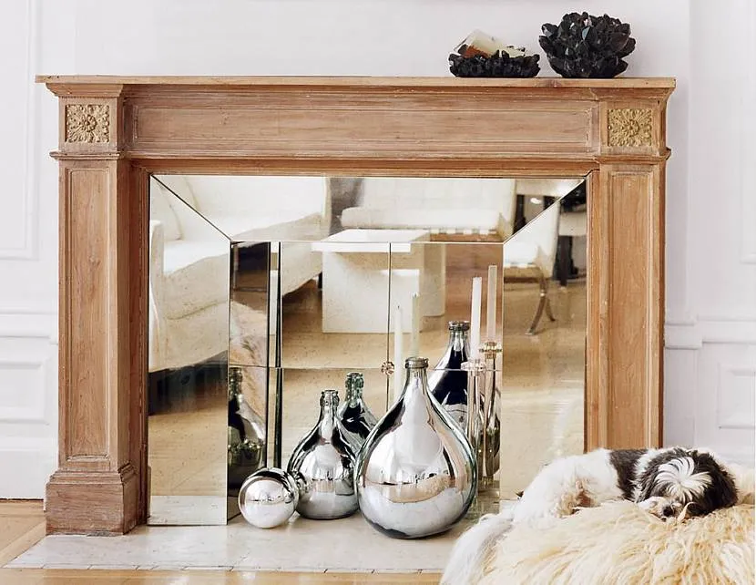 - Оклеить зеркалами, чтобы зрительно раздвинуть границы каминного портала;