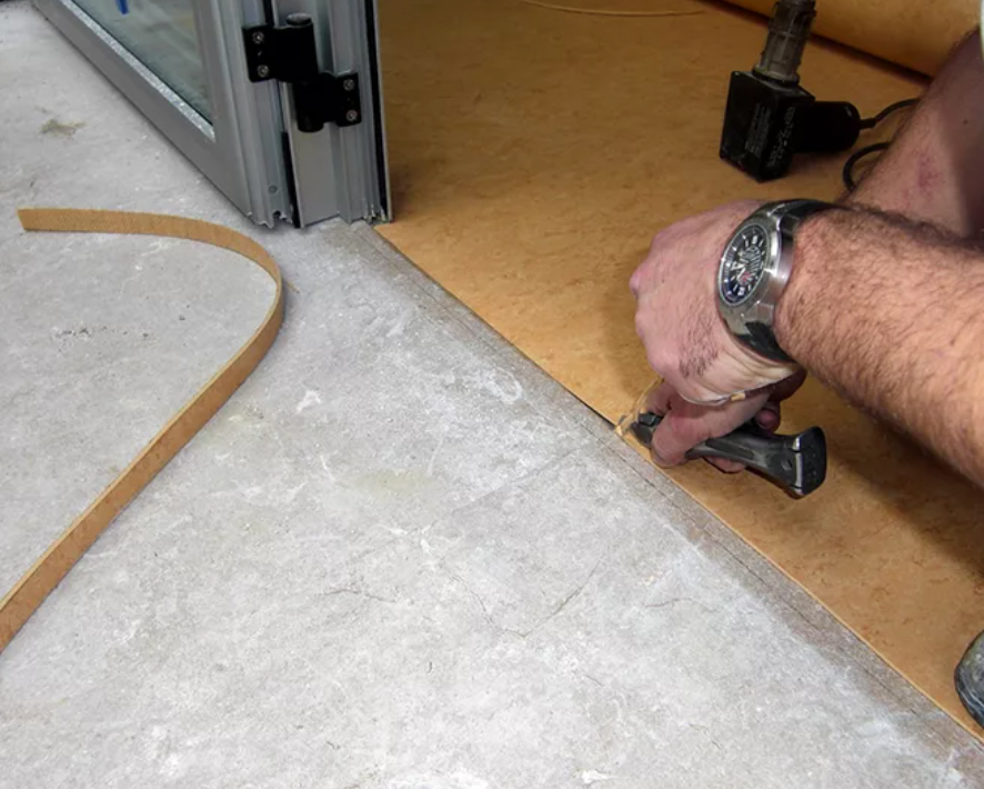 - Выполнить корректировку линолеума в зоне дверных проемов.
