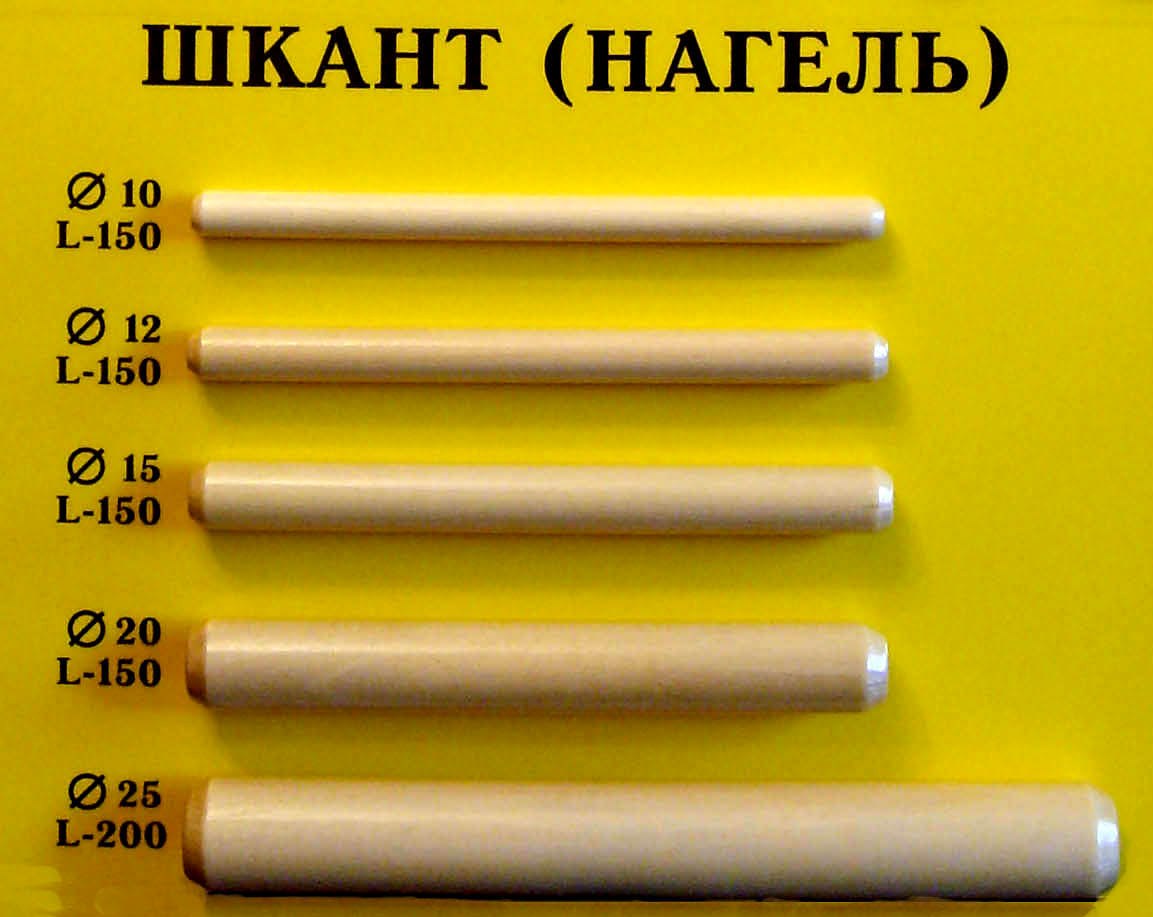 Материал – твердые породы дерева. Например береза это лучший вариант по соотношению высокая плотность дерева и недорогая цена шканта из березы. Применение стальных шкантов нецелесообразно, тепловое расширение металла и дерева различное. Это может привести к появлению внутреннего давления, что станет причиной формирования трещин.