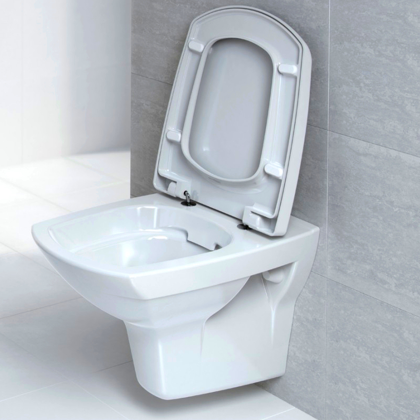 Покупатели отмечают, что цвет изделия остается естественным на протяжении многих лет, даже без использования въедливых химических средств. Еще один положительный момент модели — это глубокий смыв. Благодаря ему вода омывает всю поверхность чаши, избавляя ее от бактерий и налета. Сиденье унитаза имеет механизм плавного опускания Soft Close, а для удобства очистки петли легко снимаются.