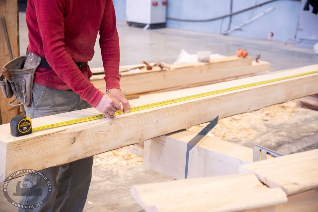 - Брусья размечаются до достижения нужной длины для последующего раскроя.
