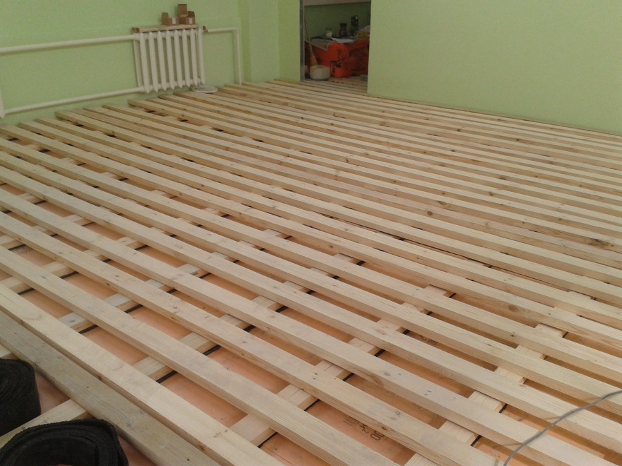 Укладка фанерного покрытия на лаги из дерева не требует выравнивания стяжки. В результате получается идеально ровное пространство пола.