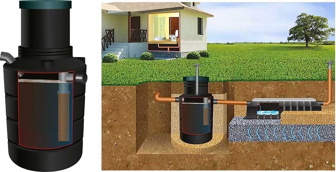 Септик Танк работает также, как и многие другие подобные установки. Порядок очищения сточных вод такой: