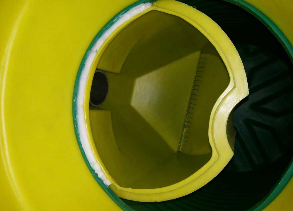 Две камеры — это лучше чем одна, даже несмотря на то, что разделена она вертикально. Надо заметить, что в обычной комплектации приваривается горловина 300 мм высотой (по заказу могут сделать 500 мм высотой). Малой высоты горловина не всегда удобна. Канализационные трубы должны от дома идти под уклоном около 2 см на метр. По санитарным нормам септики должны находится довольно далеко от дома. Если он на расстоянии не более 10 метров, данной горловины вам хватит ( входной патрубок отнимает не менее 10 см). Если же нет, придется что-то мудрить или просить приварить более высокую горловину.