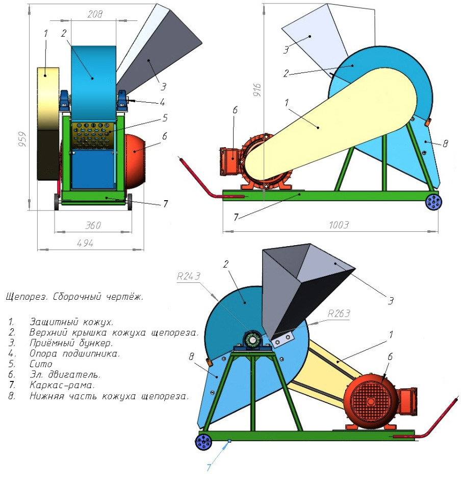 Тем более, что изготовление деталей и общий монтаж самодельной щепорезки по чертежу гораздо проще, чем без него, даже если есть вспомогательное видео.