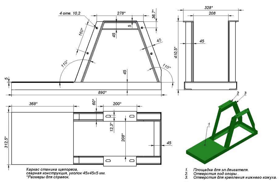 Поэтому любой, кто знает, как сделать веткоруб или щепорез для дальнейшего производства арболита или другого применения изготавливаемой им щепы своими руками, и уверен, что способен сам собрать такое устройство, без проблем сможет сделать и его чертеж.