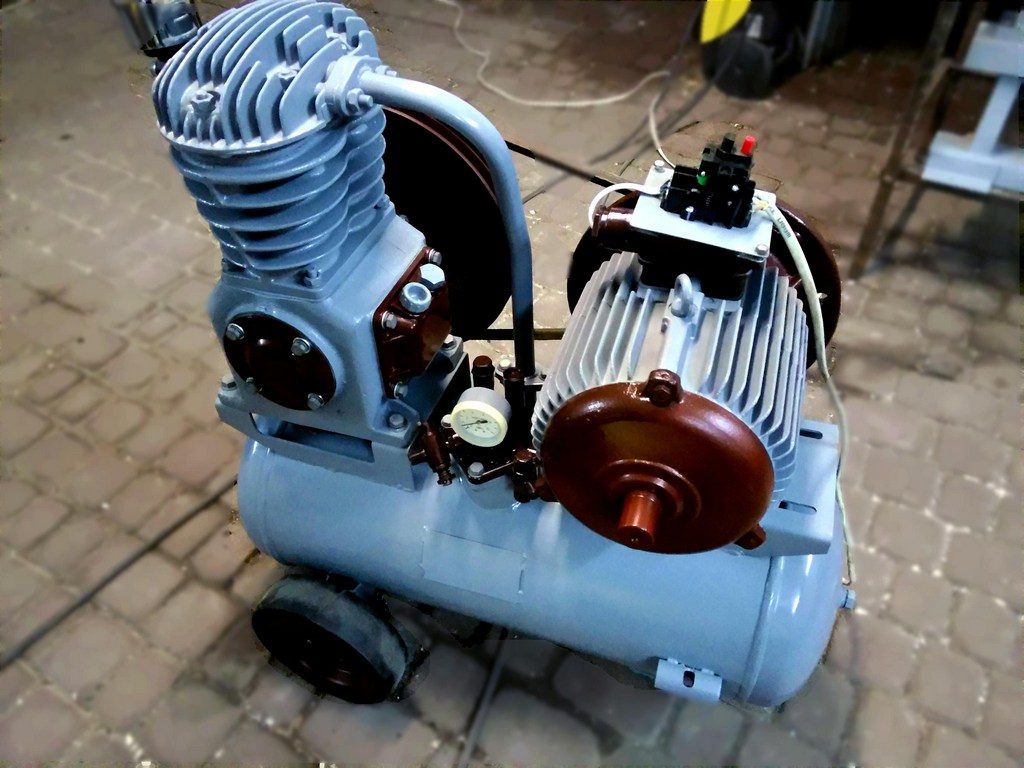 Компрессор самодельный работает по элементарной схеме: