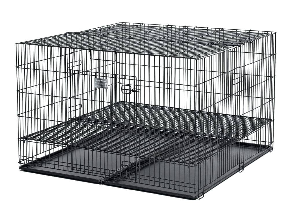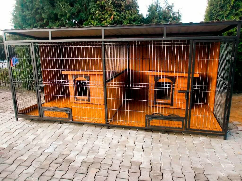 Подобный вольер оснащён дверцами с 2 сторон. Поставить к стене его можно с любой стороны. Это изделие стоит брать для животных, обладающих плотным шерстяным покровом, страдающим от жары. Металлический вольер — это наиболее дешёвая и полезная вещь.