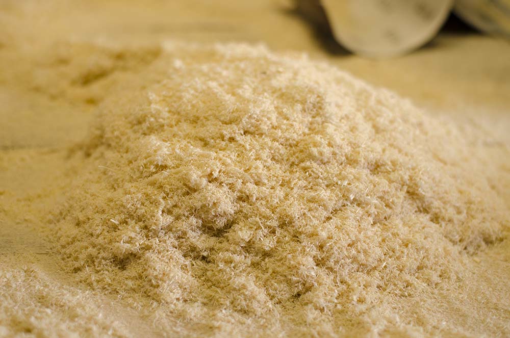 Для неглубоких трещин и стыков между досками берите самые мелкие опилки