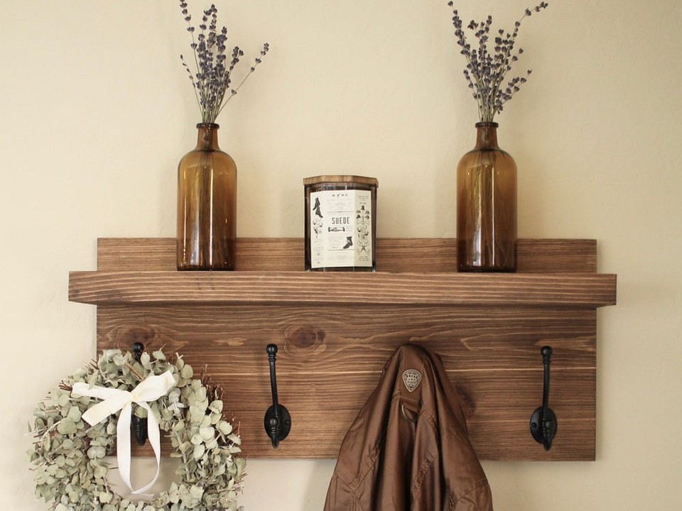 Очень важно для долговечности и эстетической привлекательности изделия лак наносить в три слоя. Что же касается крючков для настенной вешалки, так они могут быть, как из стали, так и из дерева. Так само, они могут изготавливаться самостоятельно и покупаться в магазине
