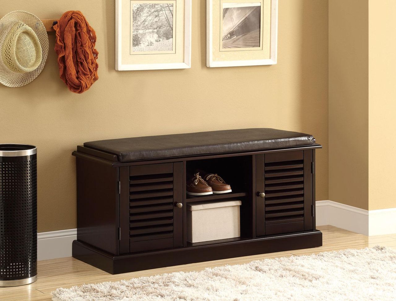 Красивая подставка для обуви с верхним сиденьем.