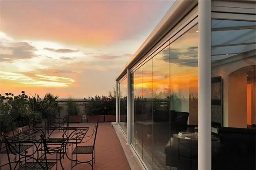Раздвижная система подходит для летних веранд, беседок, а вот зимой наблюдаются теплопотери.
