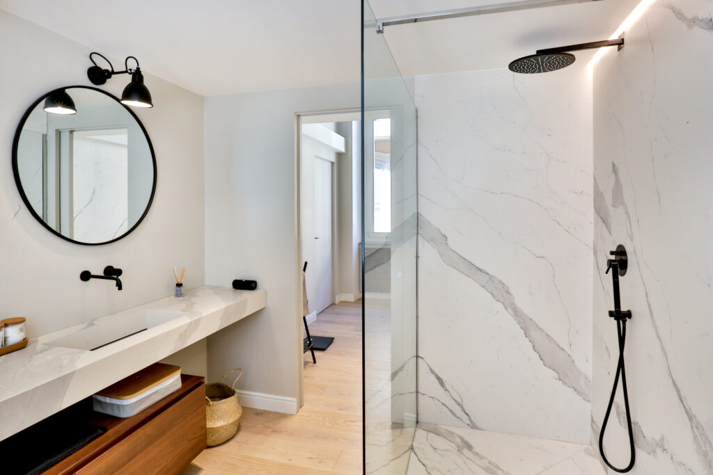 Этот пункт не спроста идёт 2-ым. Раковина встроенная в столешницу + крутой смеситель критично важны и поднимают уровень интерьера ванной на принципиально другой уровень.