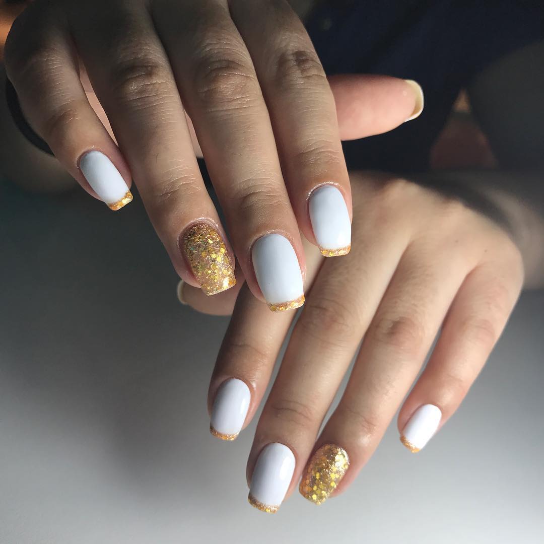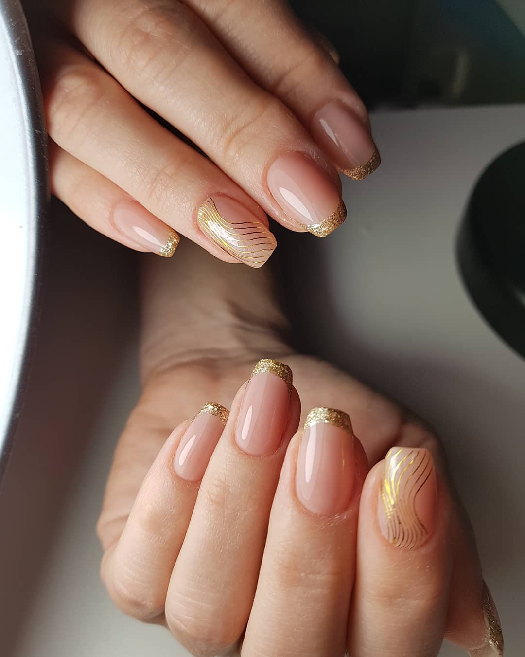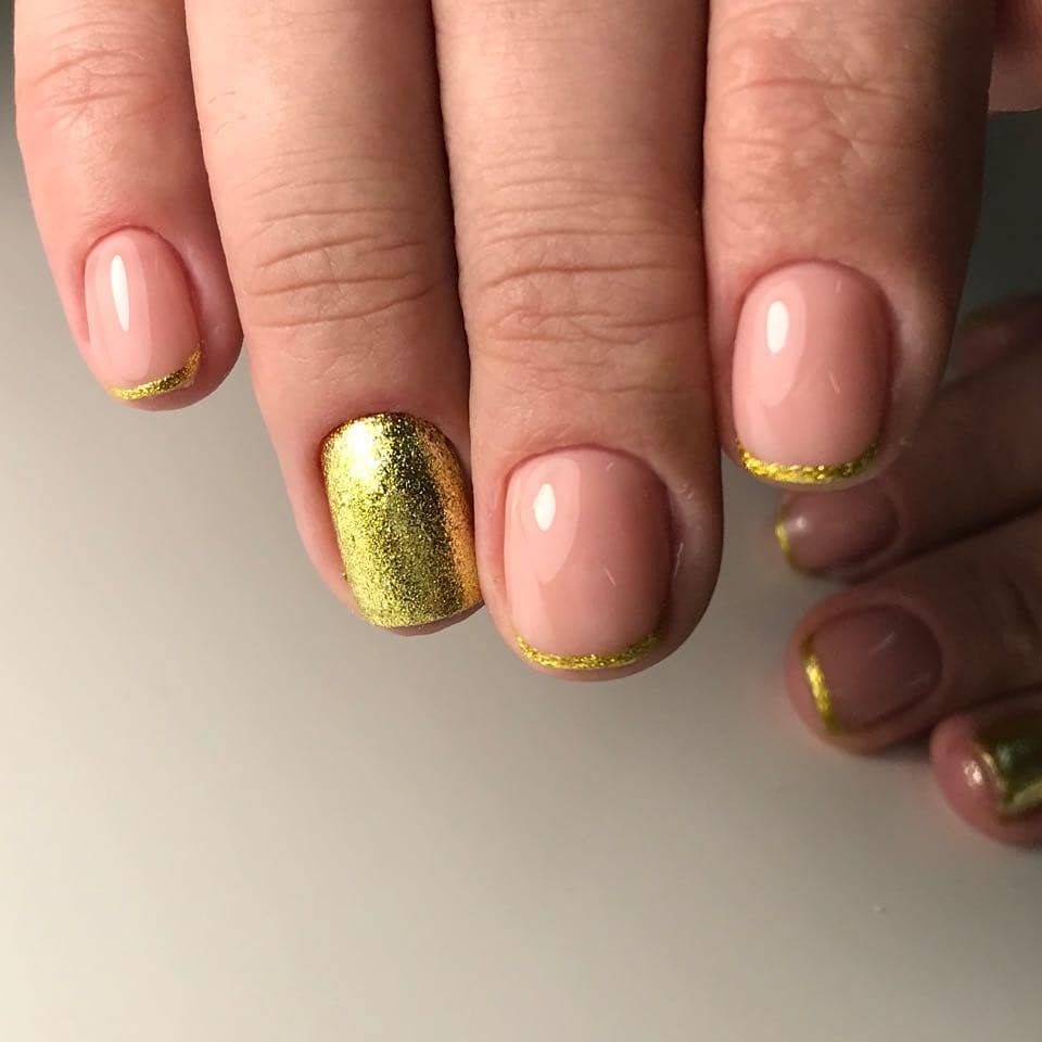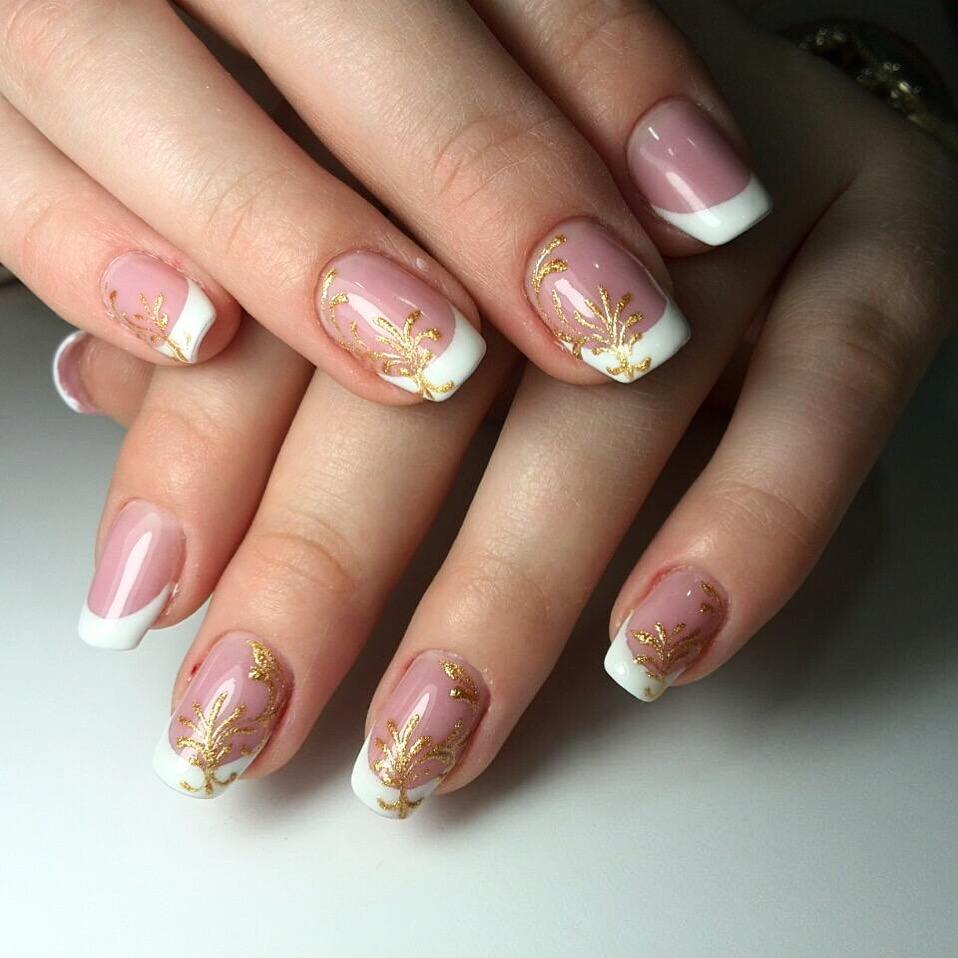 Французский маникюр в золотом цвете – это отличная альтернатива классике. Благодаря различным рисункам и дополнительному декору любой маникюр будет выглядеть стильно и современно. Вдохновляйтесь идеями в подборке фото и смело воплощайте их в жизнь.