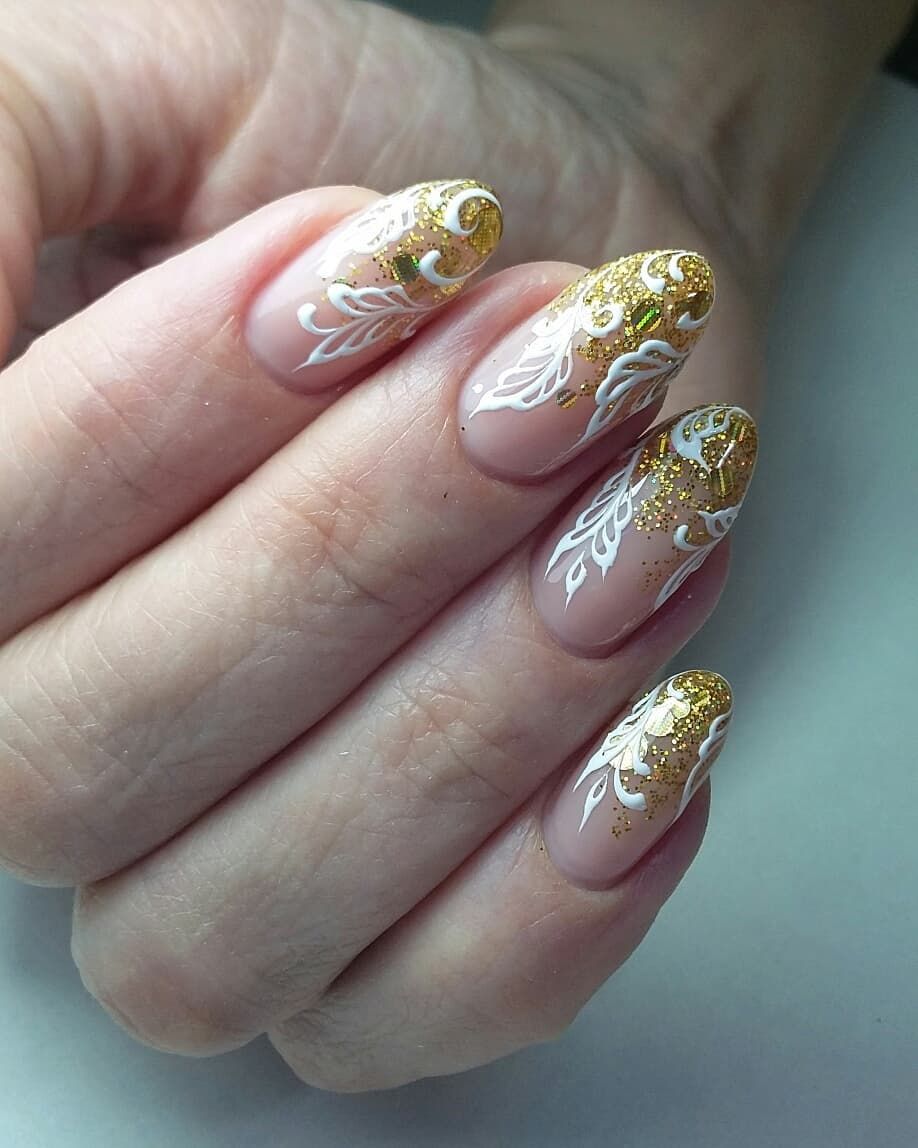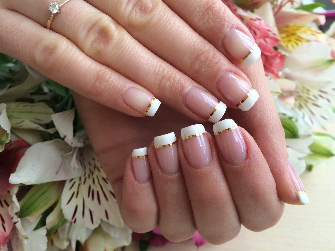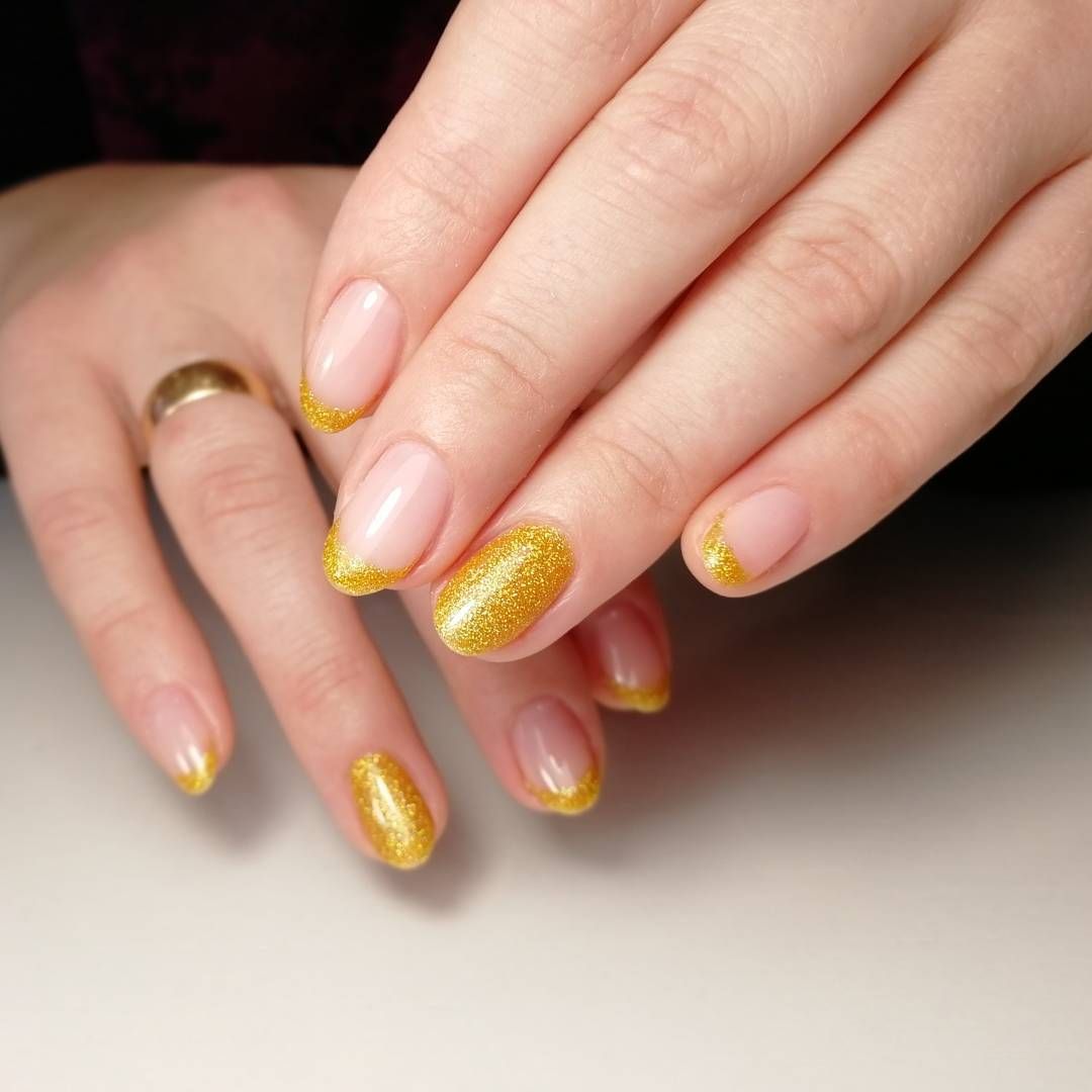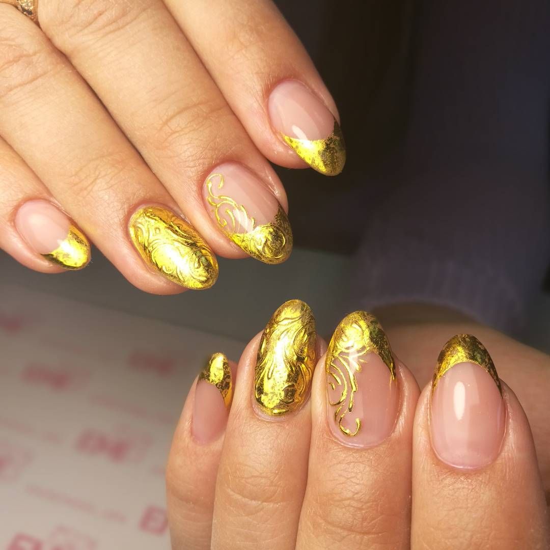 Французский маникюр в золотом цвете – это отличная альтернатива классике. Благодаря различным рисункам и дополнительному декору любой маникюр будет выглядеть стильно и современно. Вдохновляйтесь идеями в подборке фото и смело воплощайте их в жизнь.