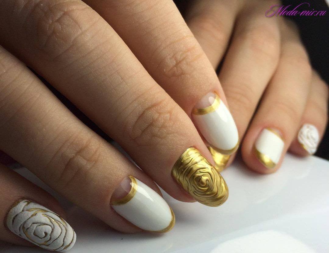 Одним из самых нежных и романтичных считается рисунок в виде бабочек. Они невероятно красиво смотрятся вместе с френчем в золотом цвете. Также все чаще девушки предпочитают дополнять маникюр рисунком в виде животных или же анималистичным принтом. В данном случае это действительно гармоничное сочетание.