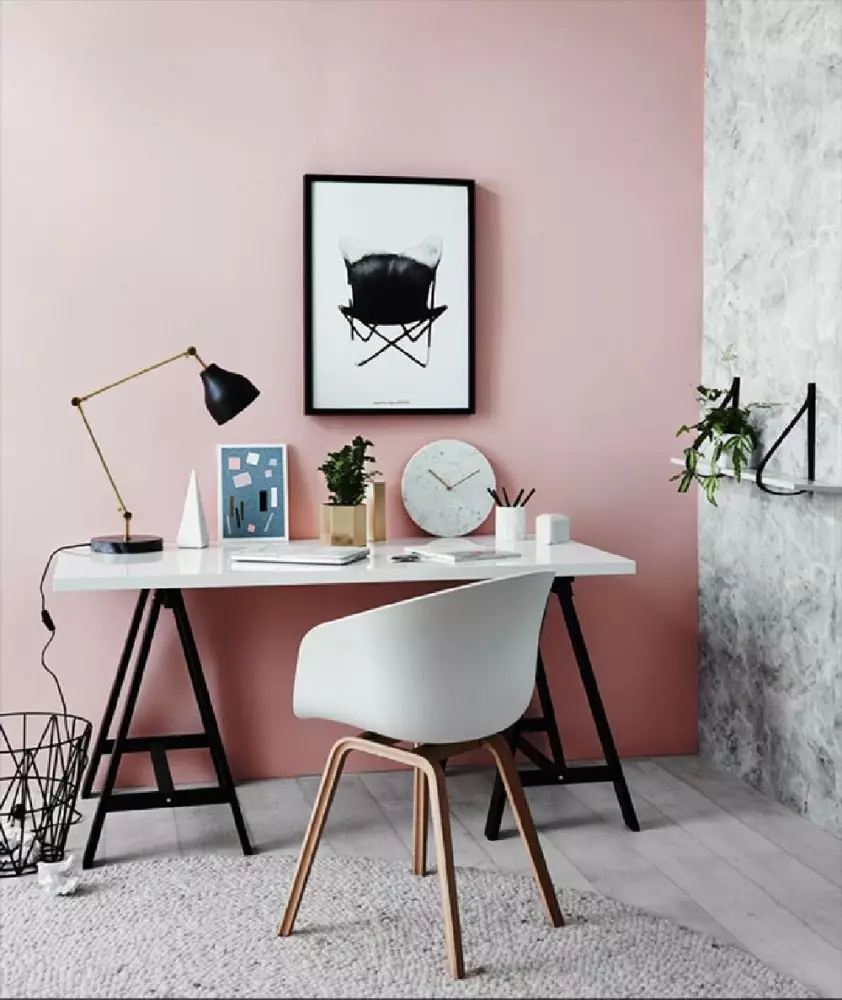 Светлые тона: молочный, белый, серый в сочетании с контрастным черным или разбавленными тонами, как нельзя лучше настроит на рабочую атмосферу.