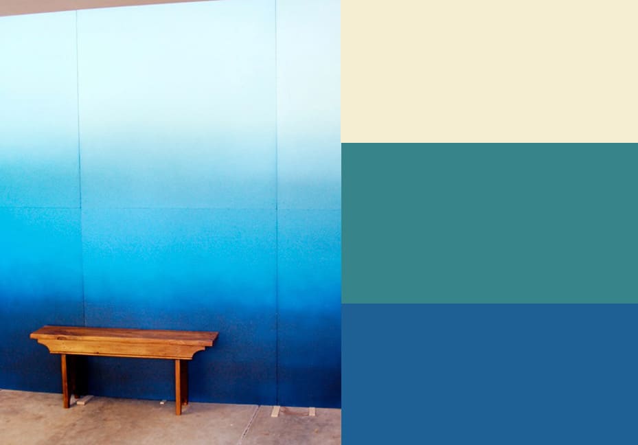 В интерьере эффект омбре используется при окрашивании стен. Переход может быть вертикальным или горизонтальным. Считается, что горизонтальный градиент сложнее в выполнении, но такая техника весьма популярна в современных стилях.
