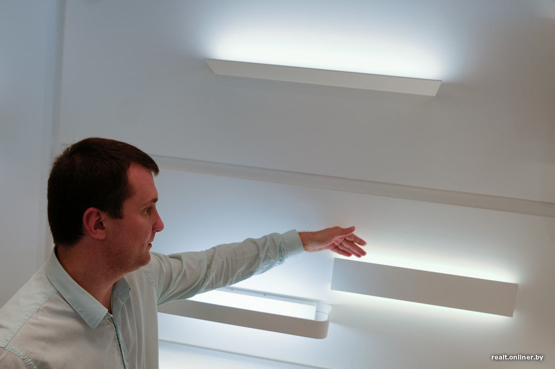 — В спальнях мы привыкли видеть люстру, но она там избыточна. Спальня вообще не нуждается в ярком свете. Там он должен быть атмосферным, а атмосфера достигается за счет бра, торшеров и встроенных светильников.