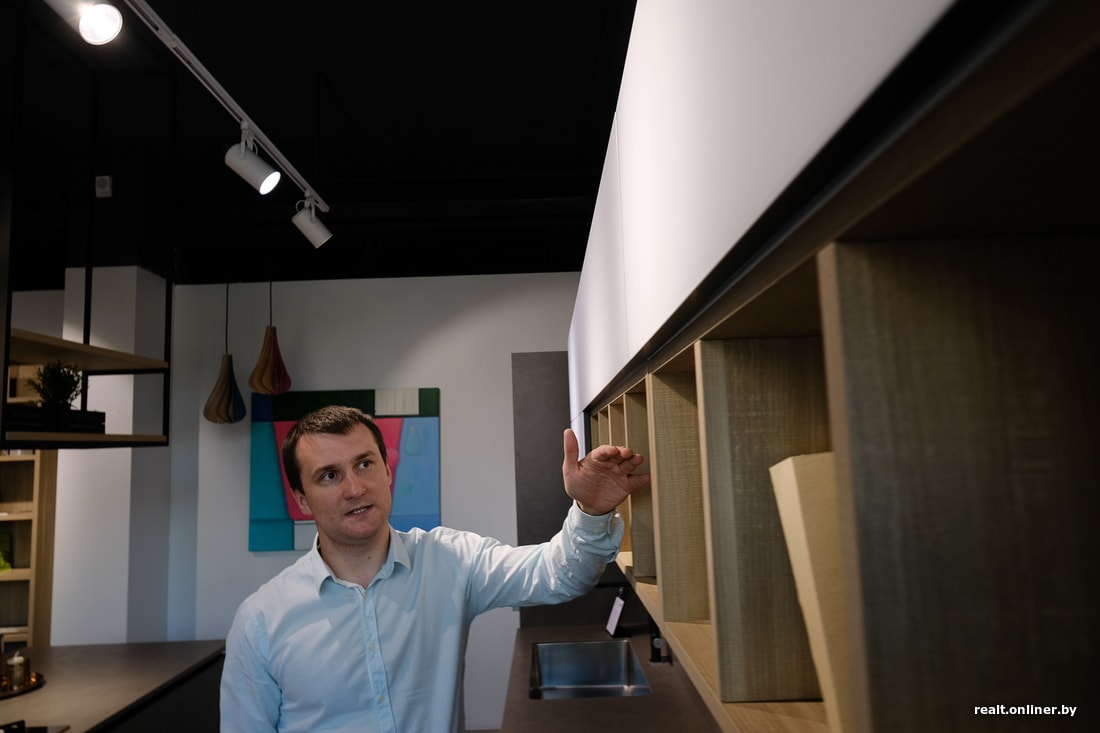 — Большинство кухонь имеют стандартные габариты: глубина рабочей поверхности — 60 сантиметров, подвесных ящиков — 35 сантиметров. Эта разбежка позволяет расположить светильник в нужной зоне, чтобы на разделочный стол не падала тень от человека, который за ним работает, — говорит дизайнер.