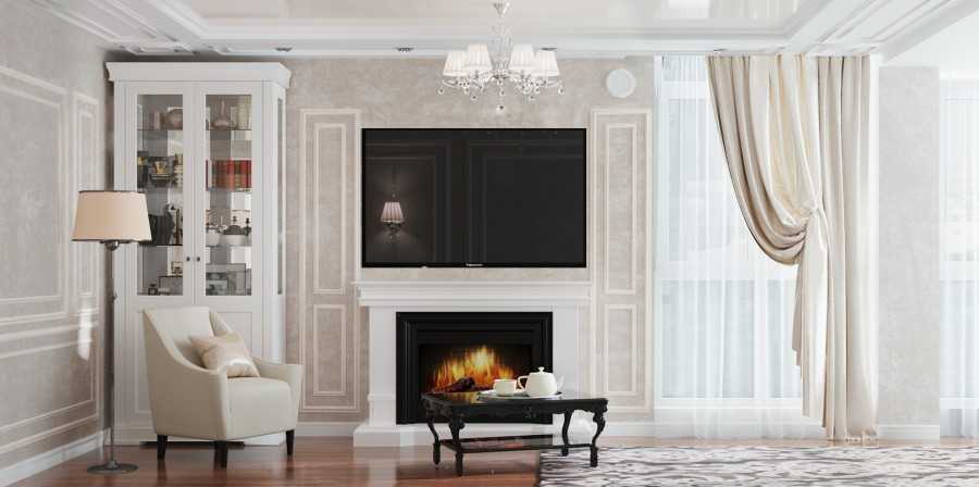 Для кухни с кремовыми стенами и фартуком идеальным вариантом является мебель белого цвета с золотистой паутиной. Уют в гостиной создаст биокамин в классическом белом обрамлении. А в спальне можно расположить шкаф с зеркальными фасадами, это расширит помещение.