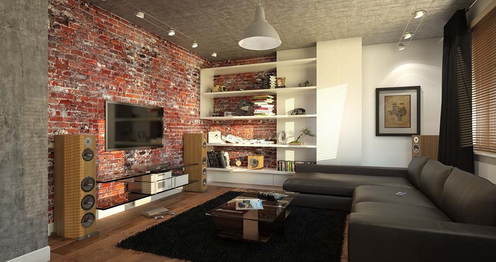 Стиль подразумевает создание всех поверхностей с нуля – оклеивание стен или обработка их материалами, имитирующими бетон, кирпичную кладку, а также каменные блоки.