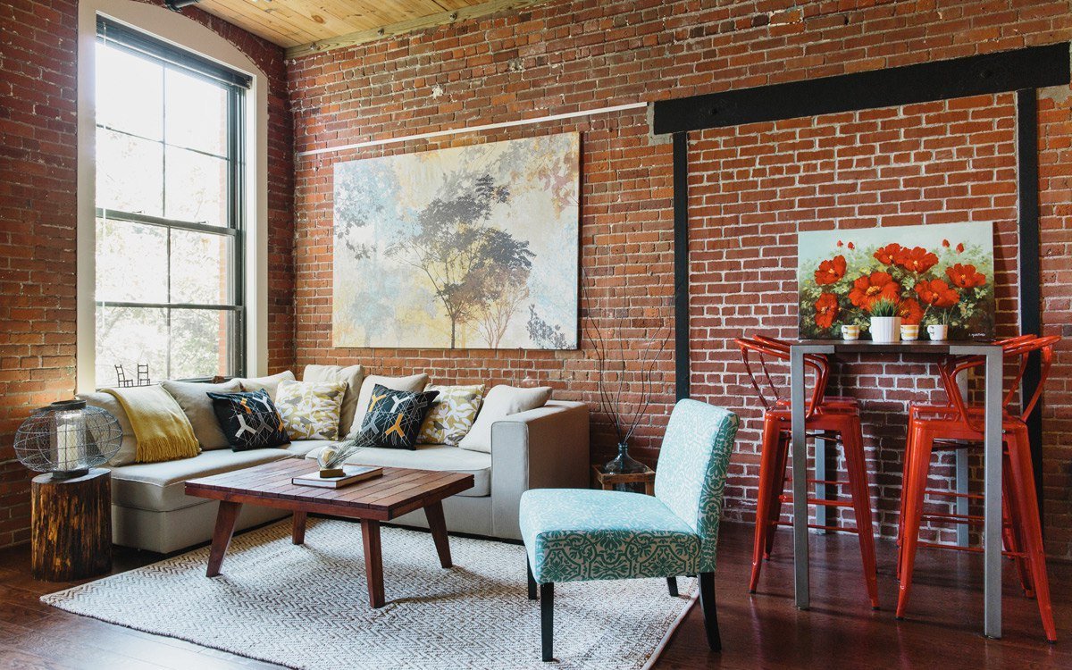 - оголенная кирпичная кладка.