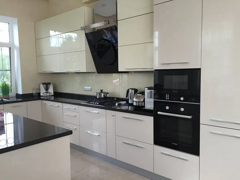 Кухня хай-тек с черной матовой мебельюИсточник kryub.in.ua