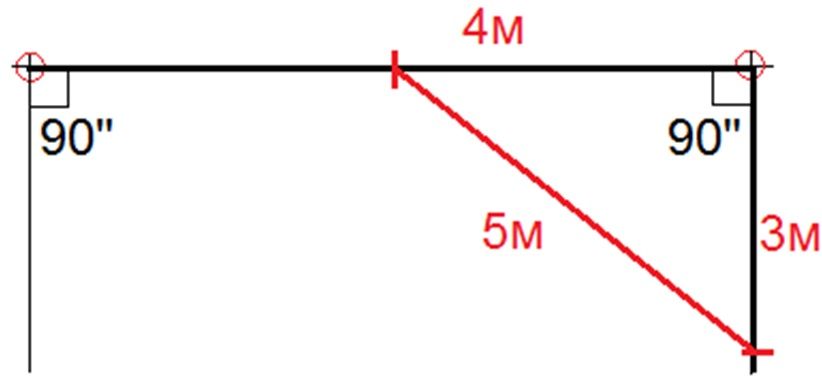 Когда под рукой нет необходимого инструмента для разметки границ основания квадратного бассейна, можно использовать правило египетского треугольника. В правильно выставленных углах – гипотенуза будет равняться 5м. Источник bankfs.ru