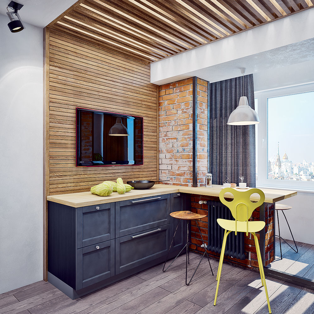 С одной стороны может создаться впечатление, что лофт – это пространство с высокими потолками, крупными деталями и другими условиями, требующими большого пространства. Однако городской подход со своей эргономикой его удивительно преобразовал, так что смело можно примерять его у себя дома. Используйте подвесные механизмы для тарелок и другого кухонного скарба.