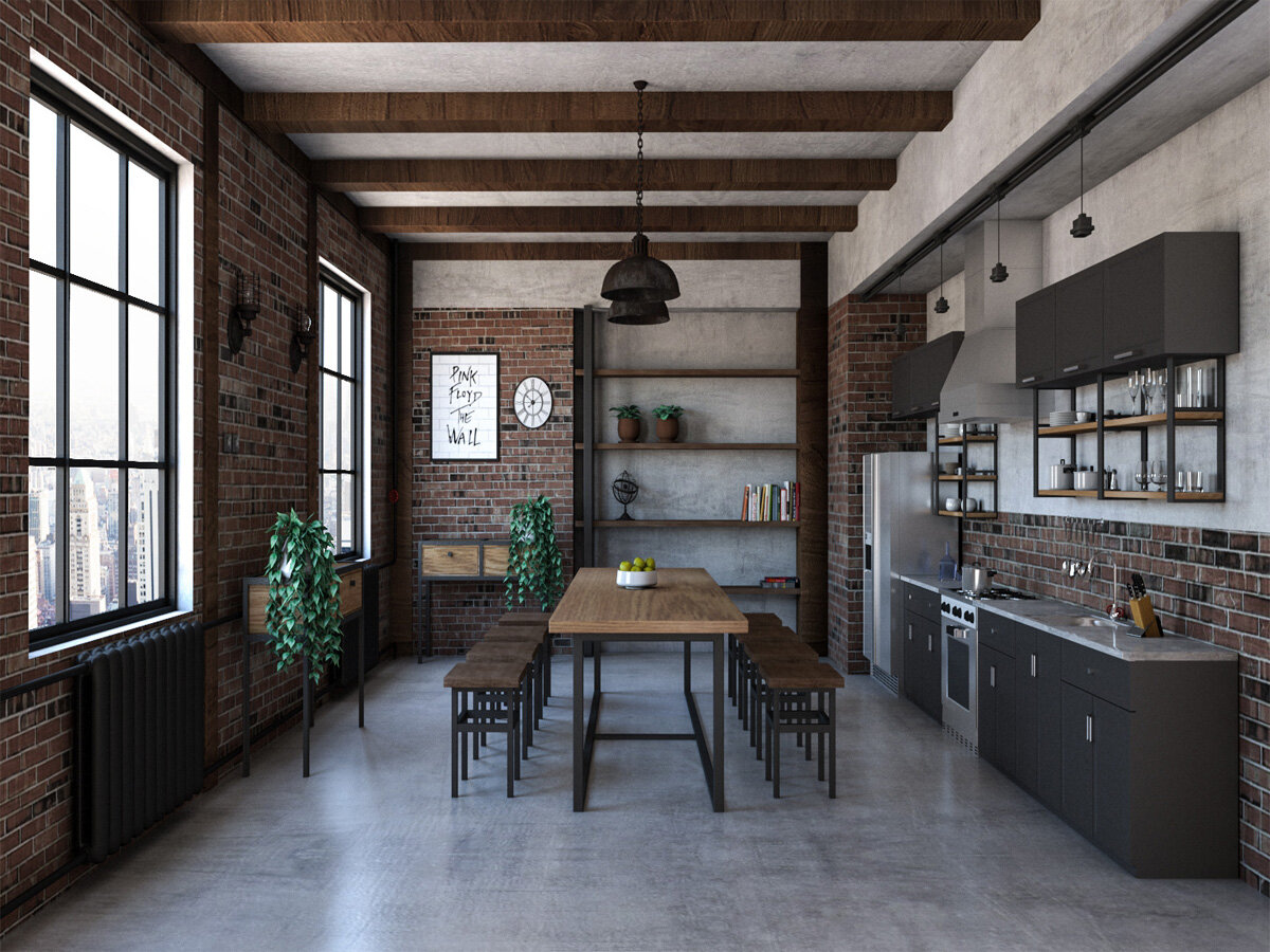 При подготовке дизайн-проекта для кухни под «loft» важно найти гармоничный баланс между натуральными и ультрасовременными материалами. Мебель надо подбирать непритязательную без изысков, но удобную и современную