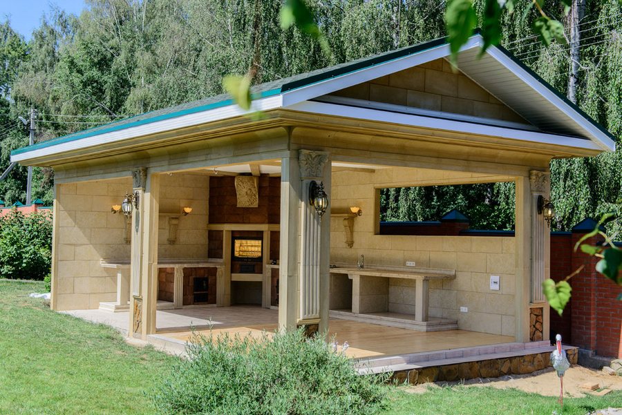 Над устройством лучше подумать на этапе строительства дома. Будет это беседка с мангалом или полноценное сооружение. Подбор места расположения имеет первостепенное значение. Свежий воздух и прекрасный окружающий вид, создадут расслабляющую атмосферу.