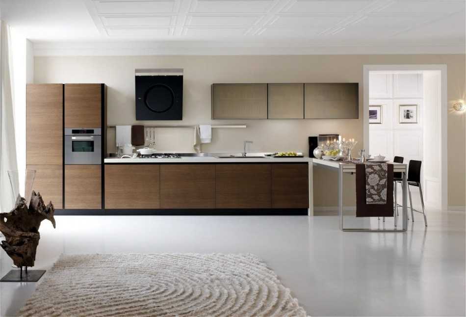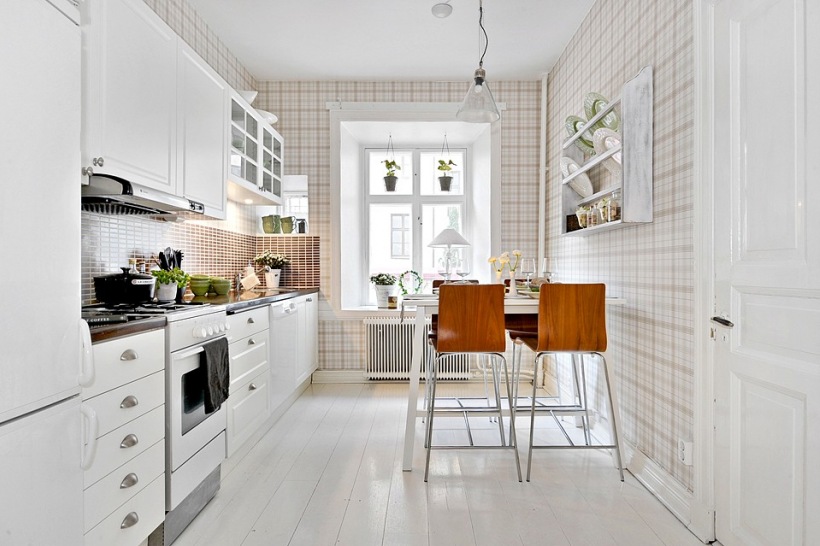 Если кухня уж совсем небольшая, в таком случае иногда ставят барную стойку, которая может служить как для приготовления пищи, так и в качестве обеденного стола. Об этом думать не обязательно, если кухня достаточных размеров, но можно устанавливать барную стойку в качестве украшения планировки.