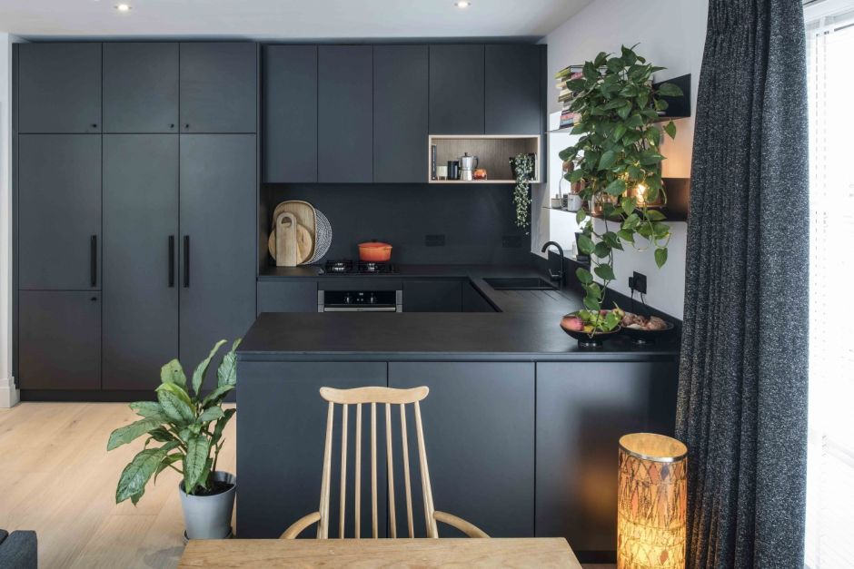 Чтобы кухня смотрелась стильно, не стоит перебарщивать с черным цветом. И стоит помнить, что черный имеет множество оттенков – как теплых, так и холодных, а теплые и холодные оттенки плохо смотрятся в рамках одного интерьера.