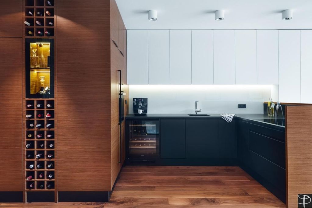 Черный в глянцевом исполнении не давит так, как в матовом, и оставляет помещение довольно светлым. Такая кухня будет смотреться изысканно.